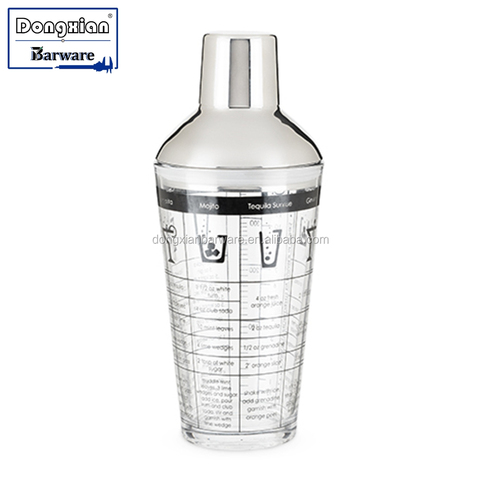 Vidro de Aço inoxidável Cocktail Shaker com Medidas, Tampa do Filtro e Receitas da Bebida Perfeita