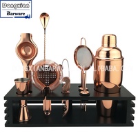 Juego de barman de 11 piezas, conjunto de barra de acero inoxidable con soporte de bambú, conjunto de utensilios de cóctel parisino, soporte de madera
